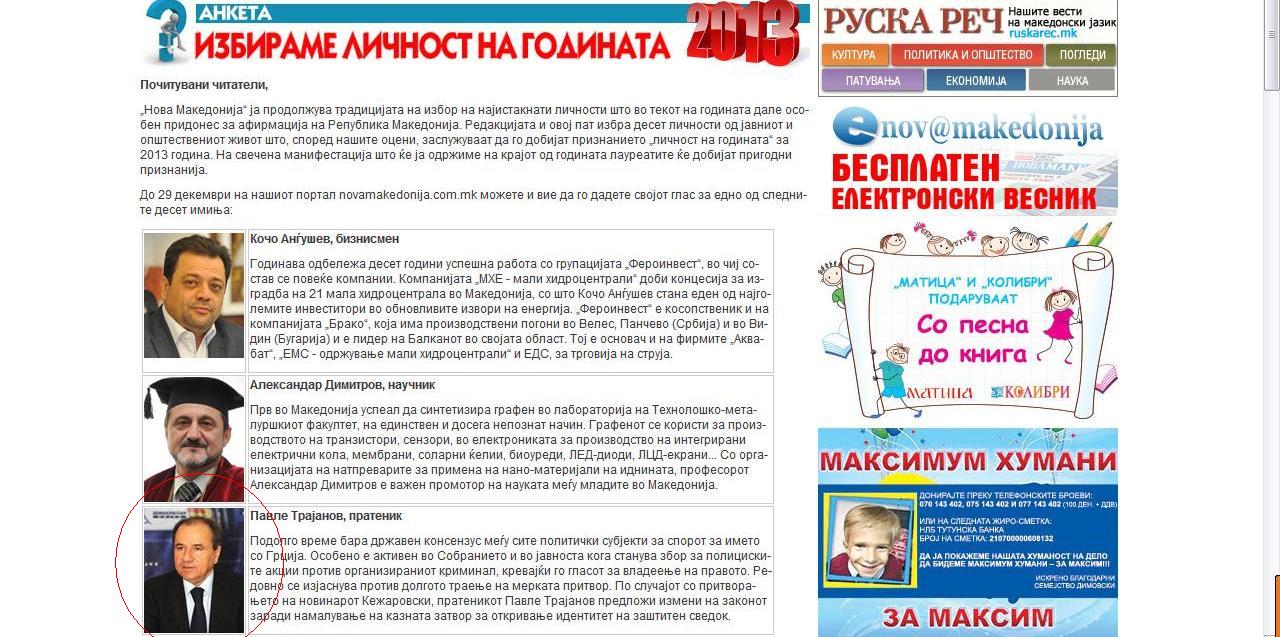 Нова Македонија „ЛИЧНОСТ НА ГОДИНАТА ЗА 2013“: Павле Трајанов