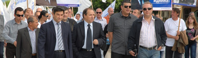 08. јули 2004 г., Скопје: Протестен митинг на Коалицијата „Третиот пат“, одржан пред Собранието на РМ, по повод децентрализацијата и новиот закон за територијална поделба.