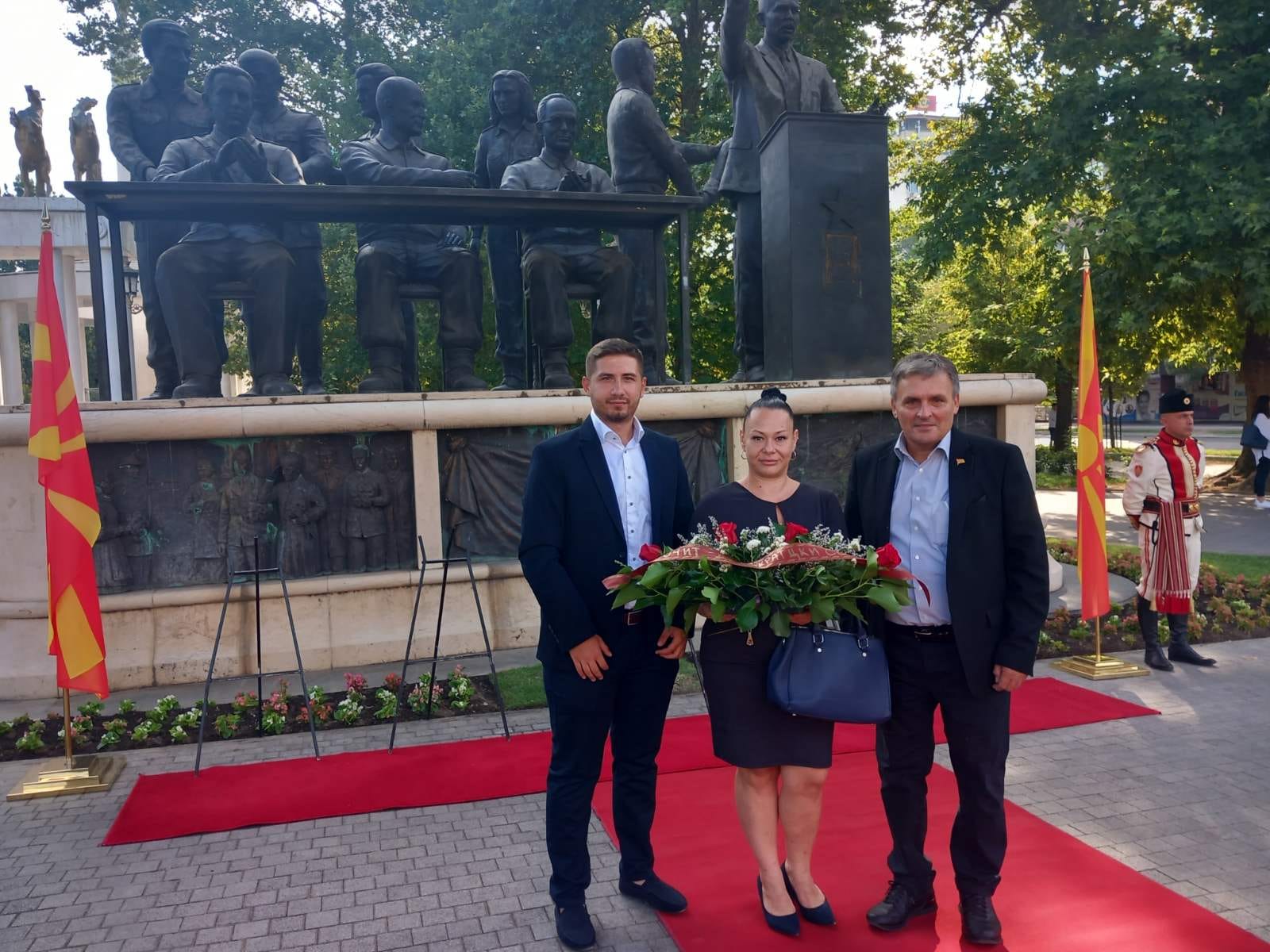 По повод јубилејот 120 години од Илинденското Востание и 79 години од АСНОМ, делегација на Демократски сојуз положи свежо цвеќе пред Меморијалниот центар АСНОМ во Пелинце и пред споменикот на Првото заседание на АСНОМ, Парк Жена борец.
