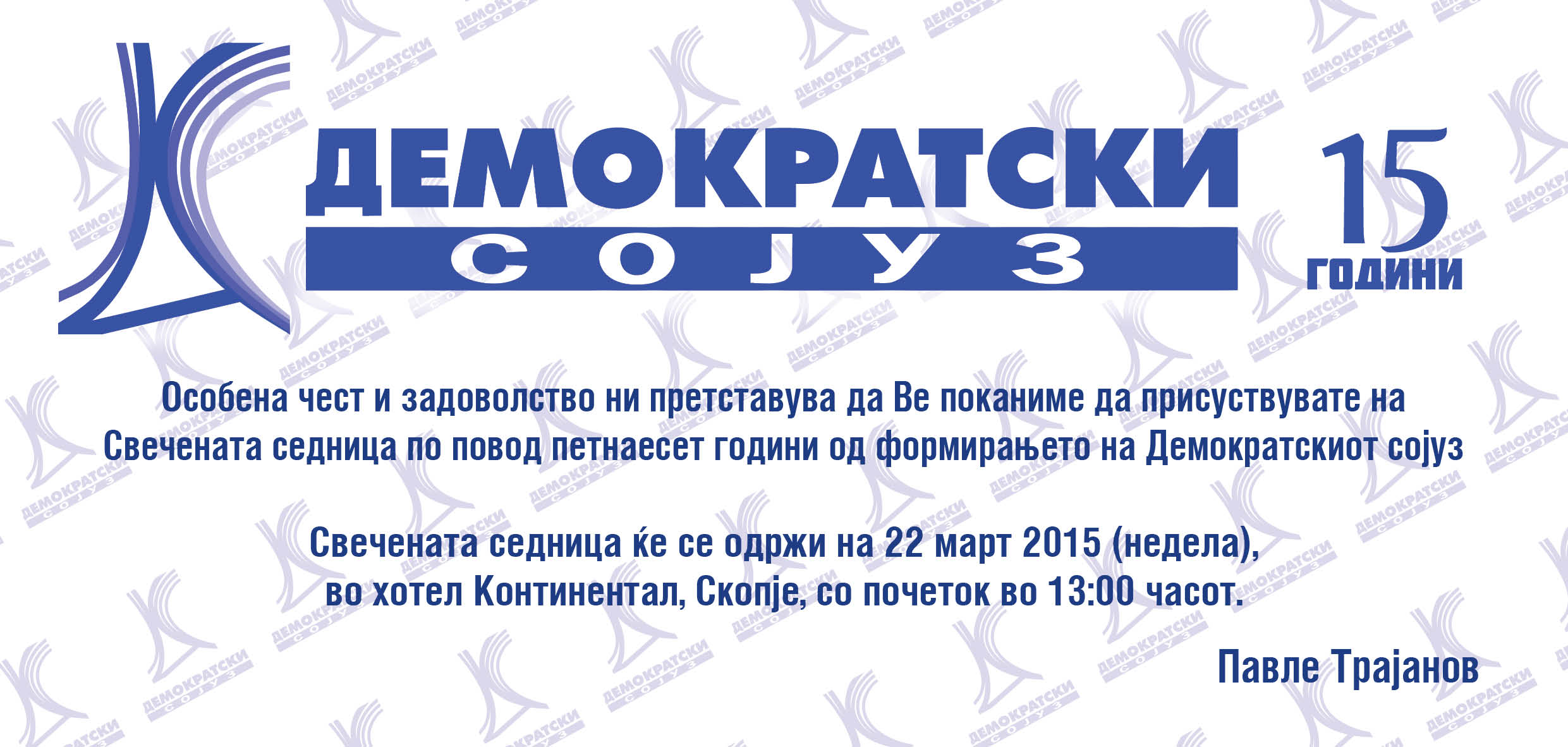 Денес, Централниот совет на Демократски сојуз расправаше за актуелните политички состојби во Македонија, посебно од аспект на злоупотребата на страшната трагедија за политички манипулации и обидите за блокада на институциите да не можат да ги извршуваат своите функции сврзани со борбата против тешките облици на криминал и висока корупција.